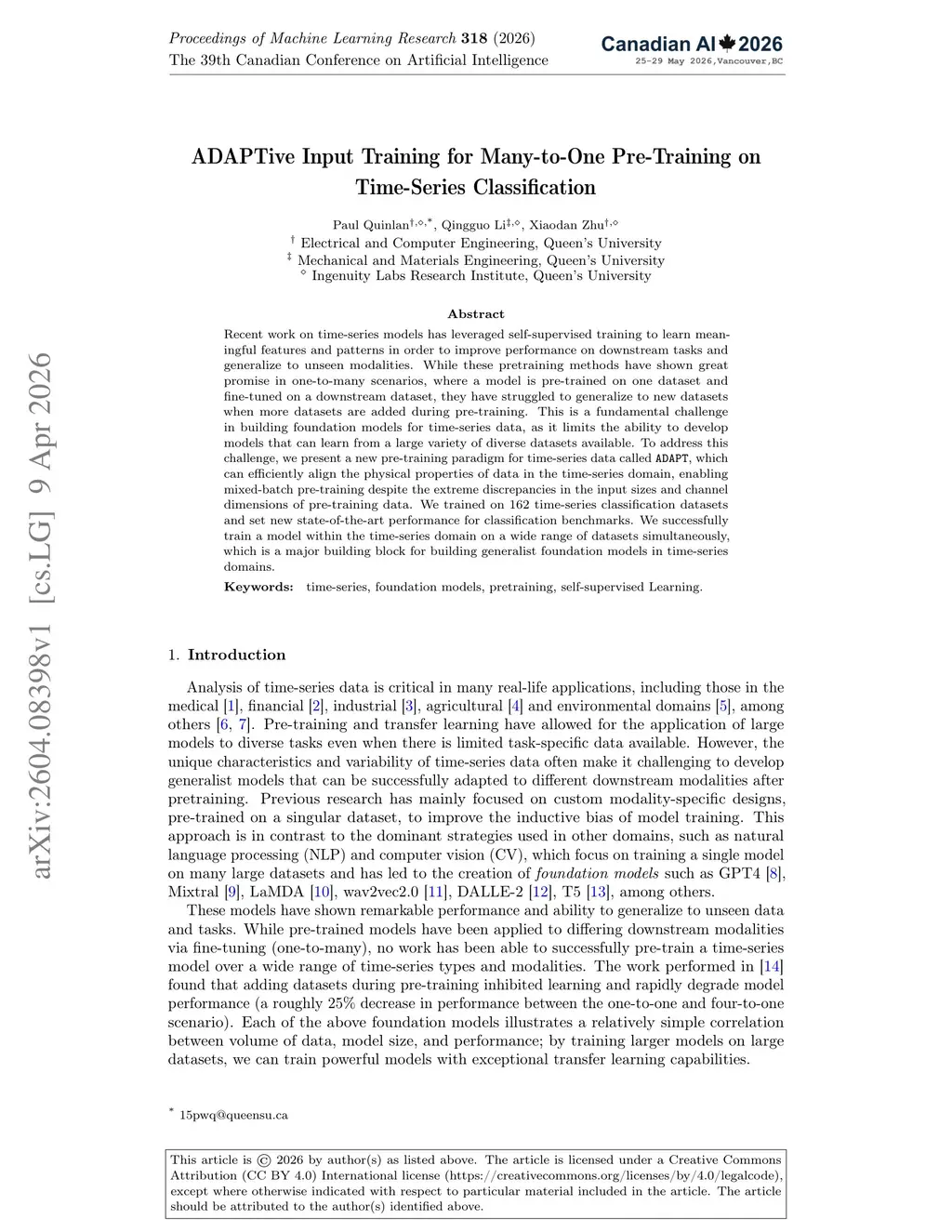 ADAPTive Input Training for Many-to-One Pre-Training on Time-Series Classification