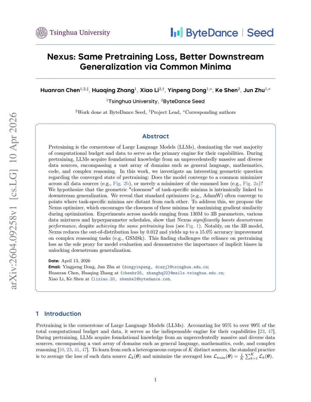 Nexus: Same Pretraining Loss, Better Downstream Generalization via Common Minima