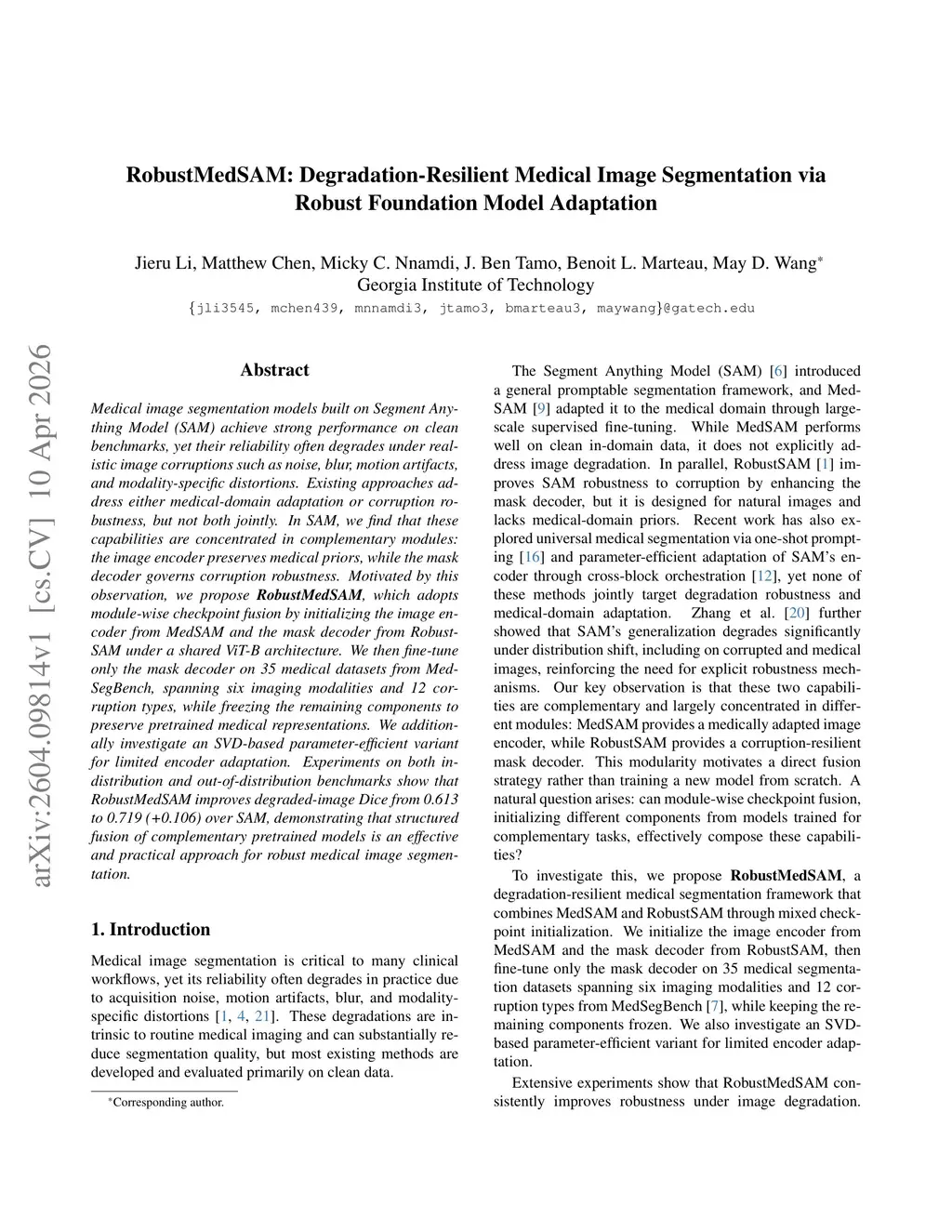 RobustMedSAM: Degradation-Resilient Medical Image Segmentation via Robust Foundation Model Adaptation
