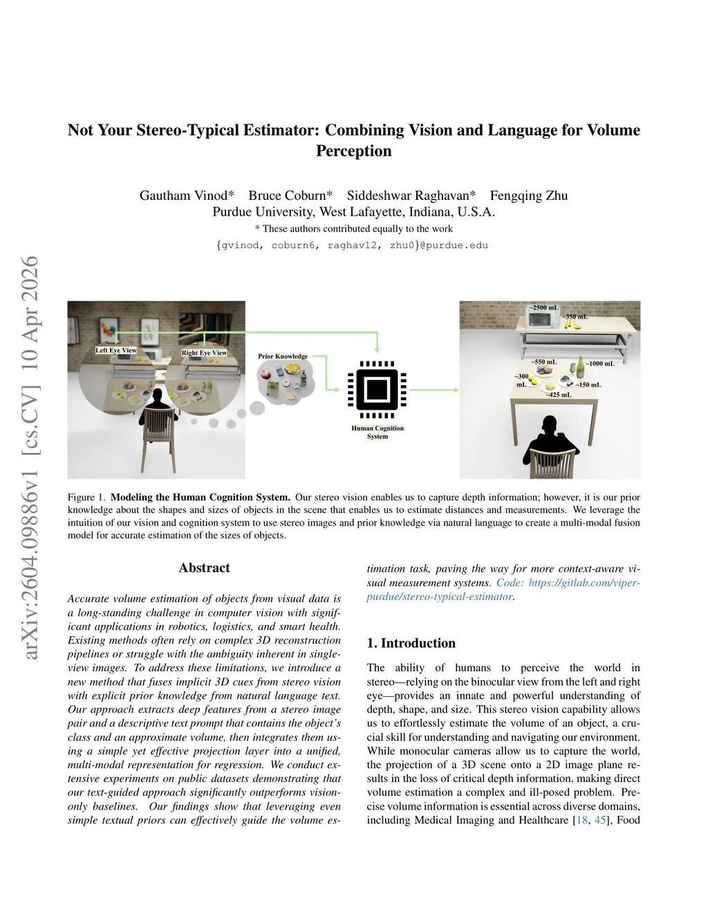 Not Your Stereo-Typical Estimator: Combining Vision and Language for Volume Perception