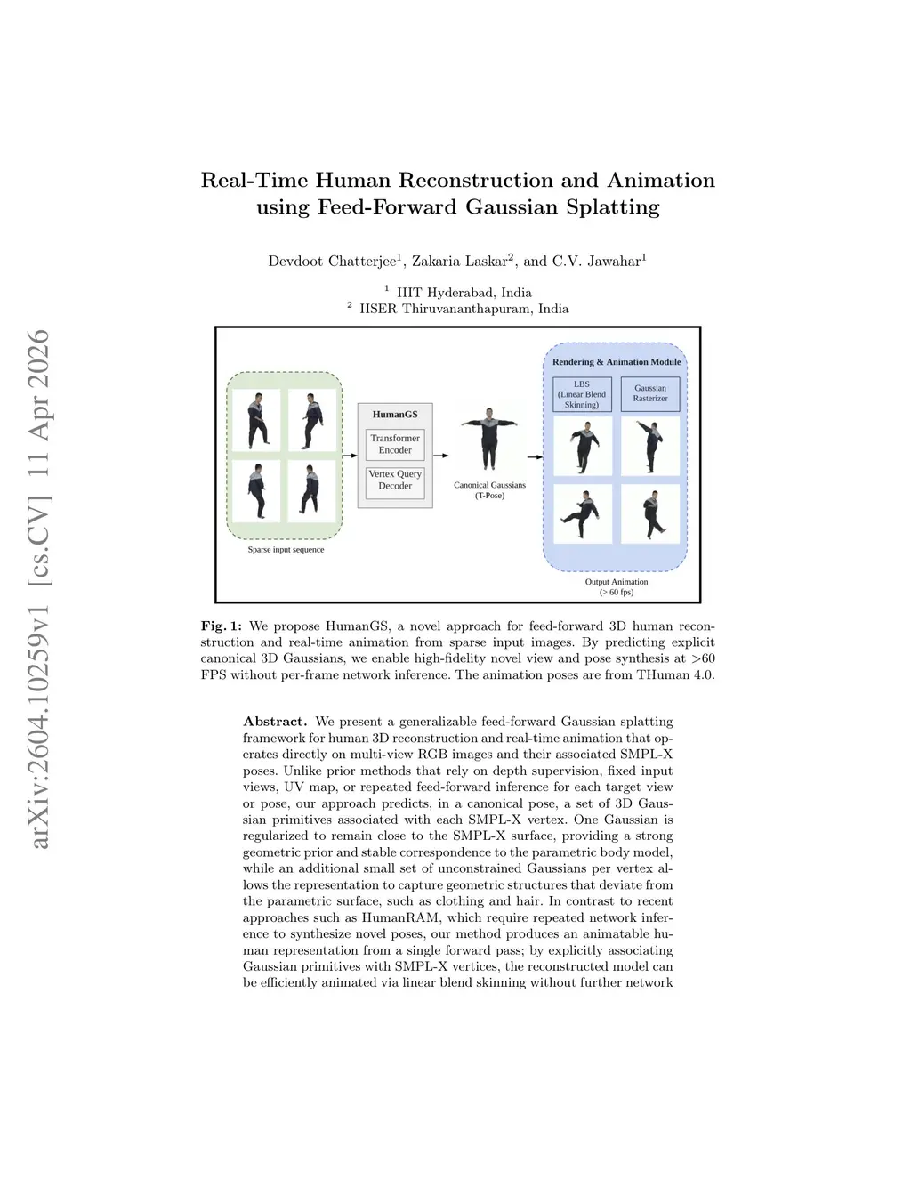 Real-Time Human Reconstruction and Animation using Feed-Forward Gaussian Splatting