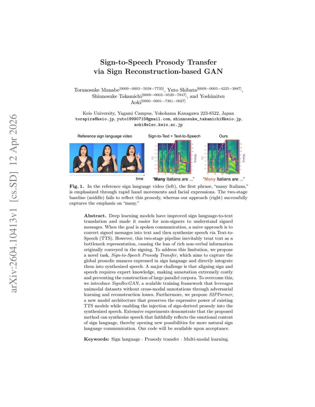 Sign-to-Speech Prosody Transfer via Sign Reconstruction-based GAN