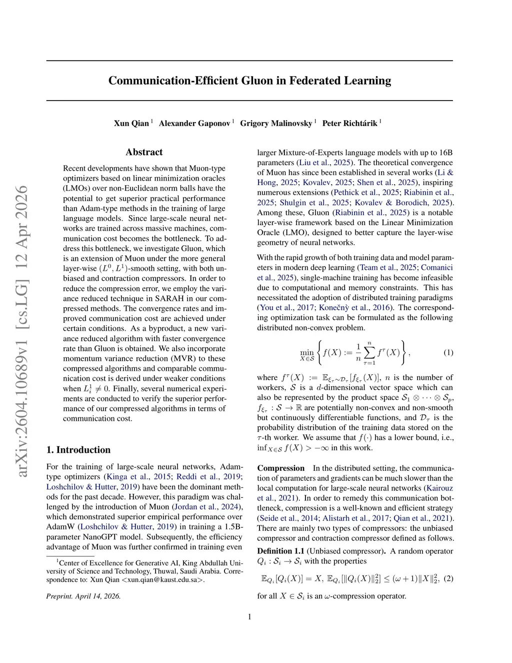 Recent developments have shown that Muon-type optimizers based on linear minimization oracles (LMOs) over non-Euclidean norm balls have the potential to get superior practical performance than Adam-type methods in the training of large language models. Since large-scale neural networks are trained across massive machines, communication cost becomes the bottleneck. To address this bottleneck, we investigate Gluon, which is an extension of Muon under the more general layer-wise -smooth setting, with both unbiased and contraction compressors. In order to reduce the compression error, we employ the variance reduced technique in SARAH in our compressed methods. The convergence rates and improved communication cost are achieved under certain conditions. As a byproduct, a new variance reduced algorithm with faster convergence rate than Gluon is obtained. We also incorporate momentum variance reduction (MVR) to these compressed algorithms and comparable communication cost is derived under weaker conditions when . Finally, several numerical experiments are conducted to verify the superior performance of our compressed algorithms in terms of communication cost.