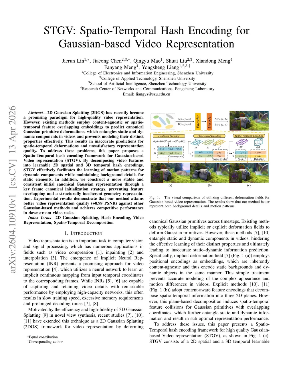 STGV: Spatio-Temporal Hash Encoding for Gaussian-based Video Representation