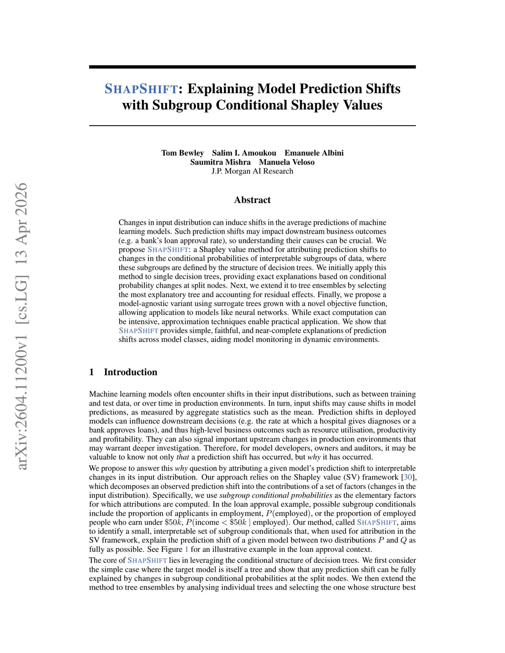 Changes in input distribution can induce shifts in the average predictions of machine learning models. Such prediction shifts may impact downstream business outcomes (e.g. a bank's loan approval rate), so understanding their causes can be crucial. We propose \ours{}: a Shapley value method for attributing prediction shifts to changes in the conditional probabilities of interpretable subgroups of data, where these subgroups are defined by the structure of decision trees. We initially apply this method to single decision trees, providing exact explanations based on conditional probability changes at split nodes. Next, we extend it to tree ensembles by selecting the most explanatory tree and accounting for residual effects. Finally, we propose a model-agnostic variant using surrogate trees grown with a novel objective function, allowing application to models like neural networks. While exact computation can be intensive, approximation techniques enable practical application. We show that \ours{} provides simple, faithful, and near-complete explanations of prediction shifts across model classes, aiding model monitoring in dynamic environments.