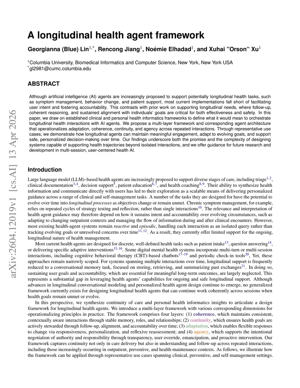 A longitudinal health agent framework