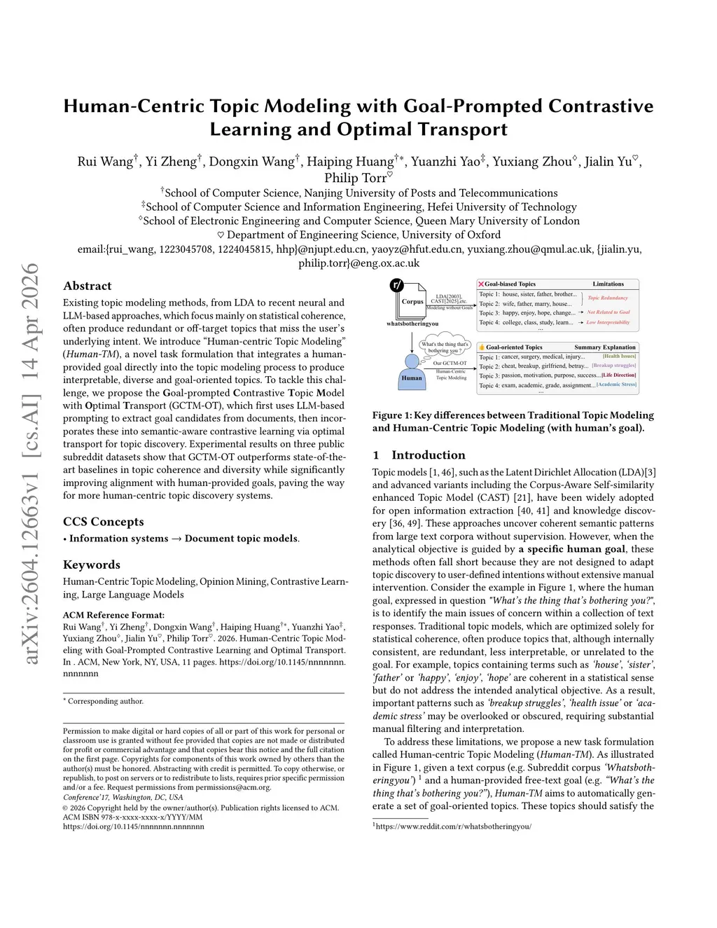 Human-Centric Topic Modeling with Goal-Prompted Contrastive Learning and Optimal Transport
