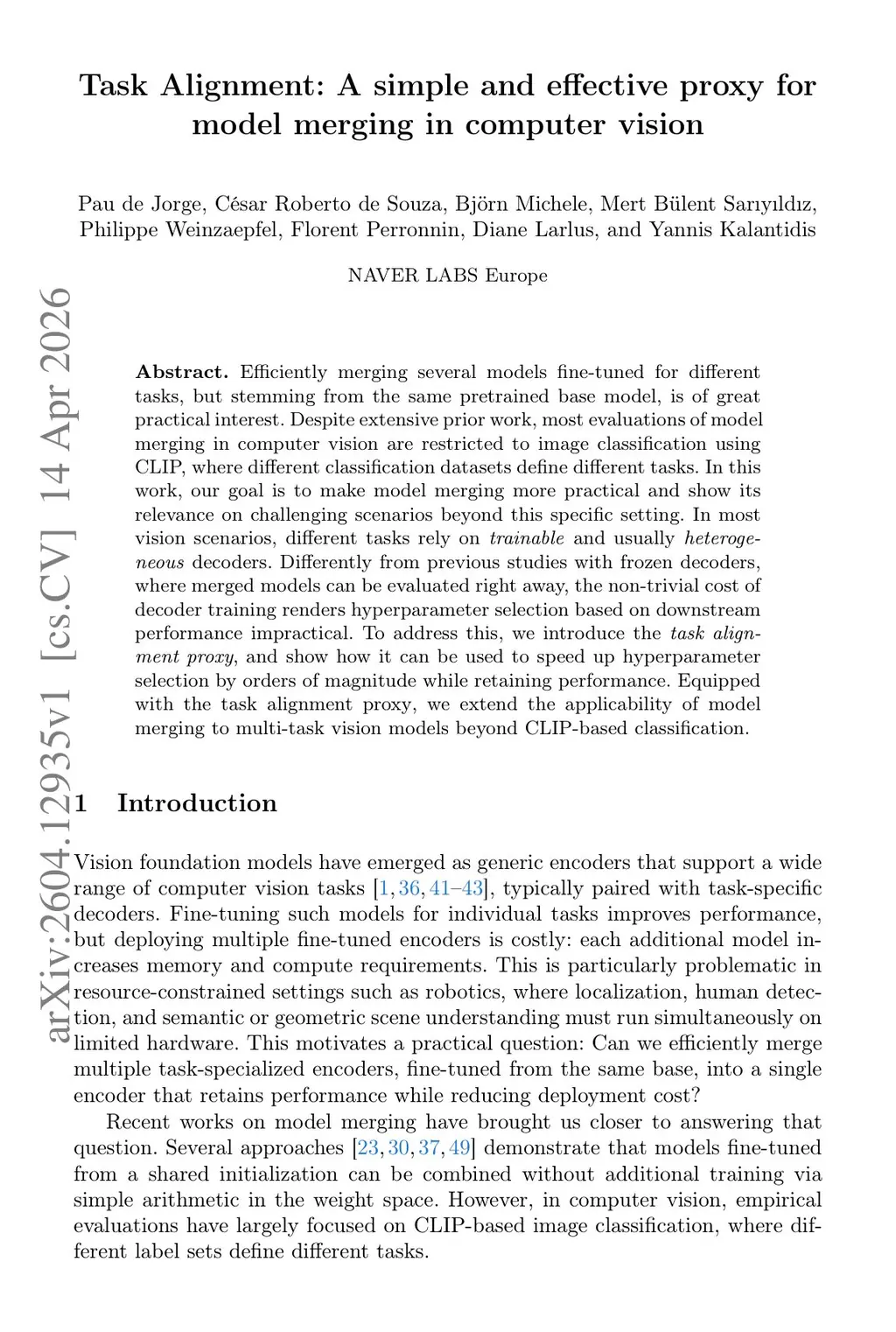 Efficiently merging several models fine-tuned for different tasks, but stemming from the same pretrained base model, is of great practical interest. Despite extensive prior work, most evaluations of model merging in computer vision are restricted to image classification using CLIP, where different classification datasets define different tasks. In this work, our goal is to make model merging more practical and show its relevance on challenging scenarios beyond this specific setting. In most vision scenarios, different tasks rely on trainable and usually heterogeneous decoders. Differently from previous studies with frozen decoders, where merged models can be evaluated right away, the non-trivial cost of decoder training renders hyperparameter selection based on downstream performance impractical. To address this, we introduce the task alignment proxy, and show how it can be used to speed up hyperparameter selection by orders of magnitude while retaining performance. Equipped with the task alignment proxy, we extend the applicability of model merging to multi-task vision models beyond CLIP-based classification.