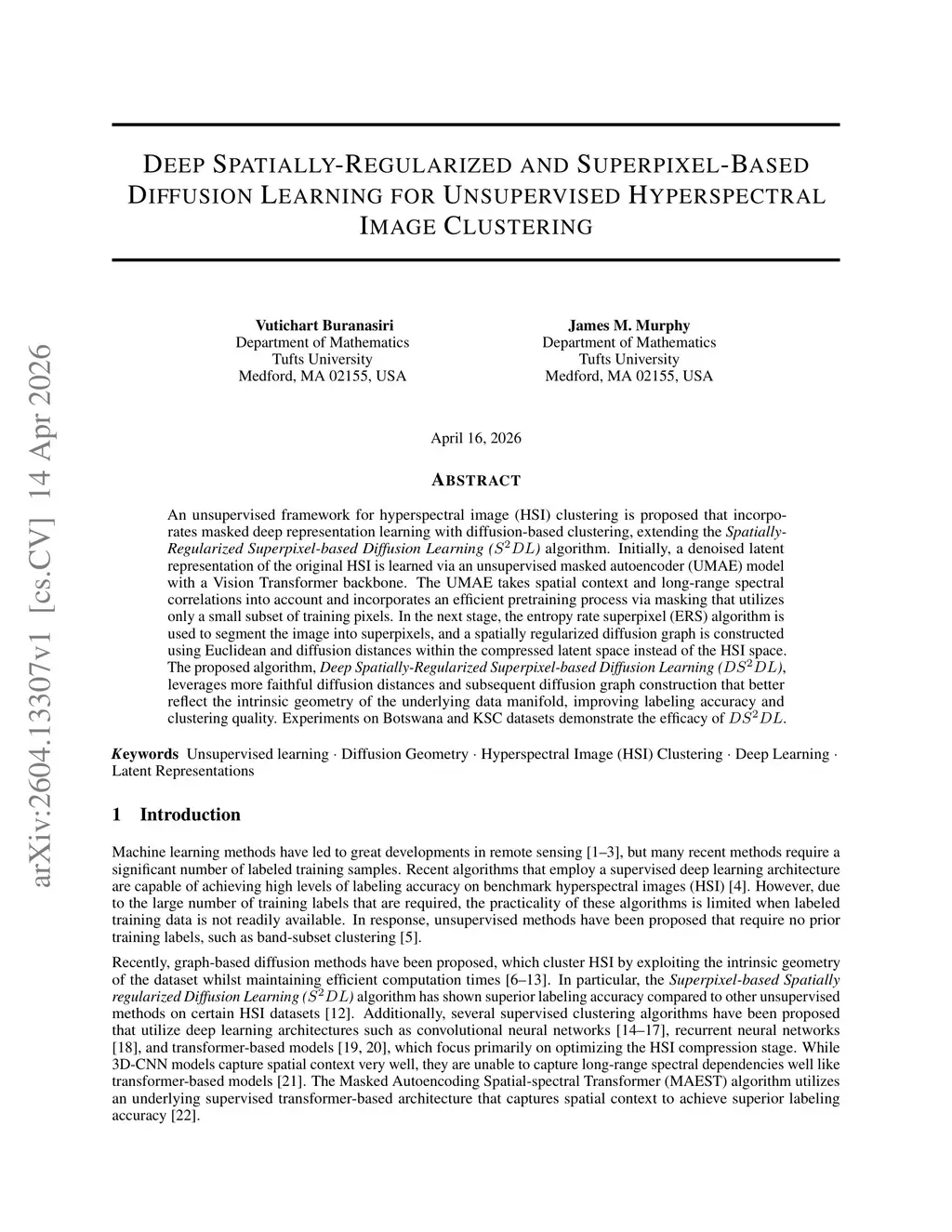 Deep Spatially-Regularized and Superpixel-Based Diffusion Learning for Unsupervised Hyperspectral Image Clustering