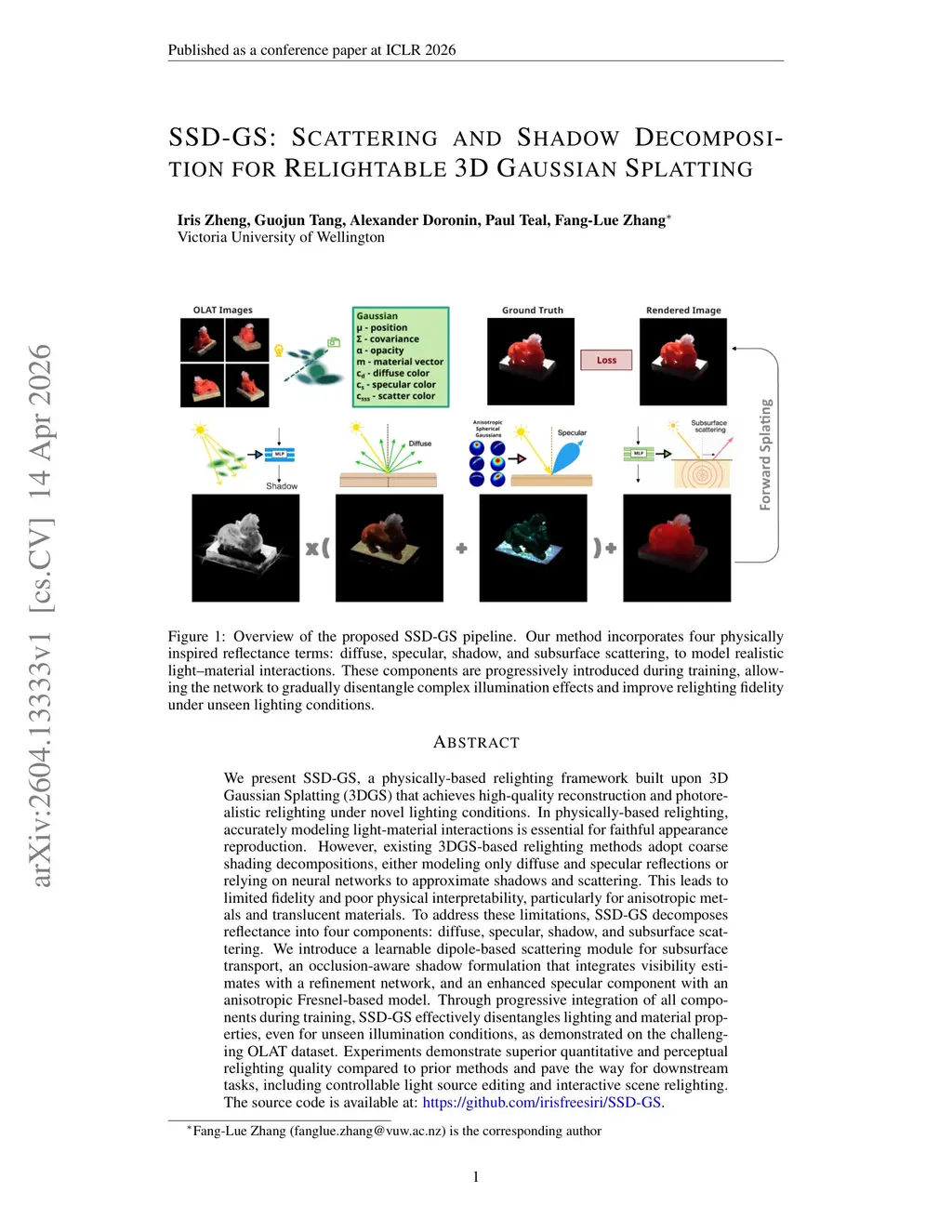 SSD-GS: Scattering and Shadow Decomposition for Relightable 3D Gaussian Splatting