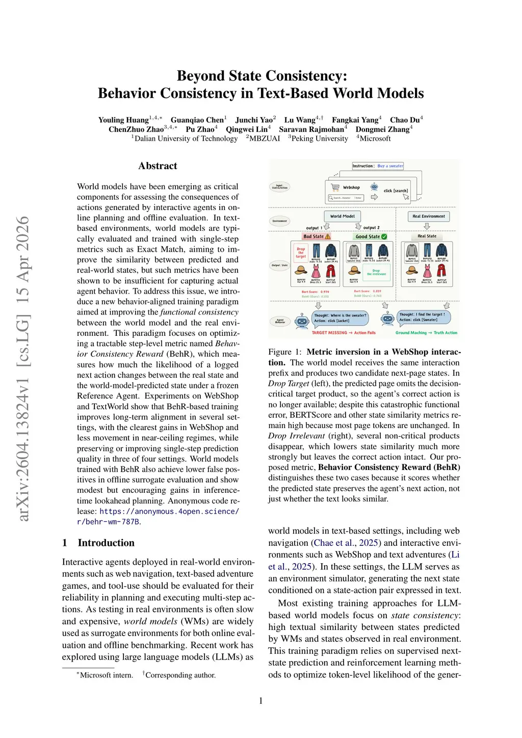 Beyond State Consistency: Behavior Consistency in Text-Based World Models