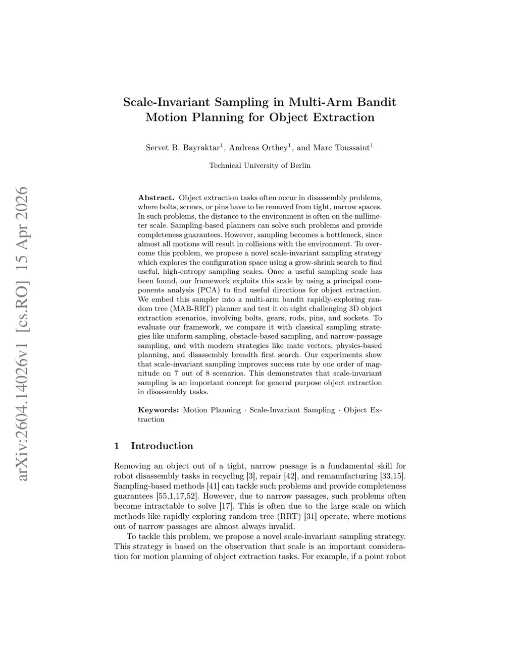 Scale-Invariant Sampling in Multi-Arm Bandit Motion Planning for Object Extraction