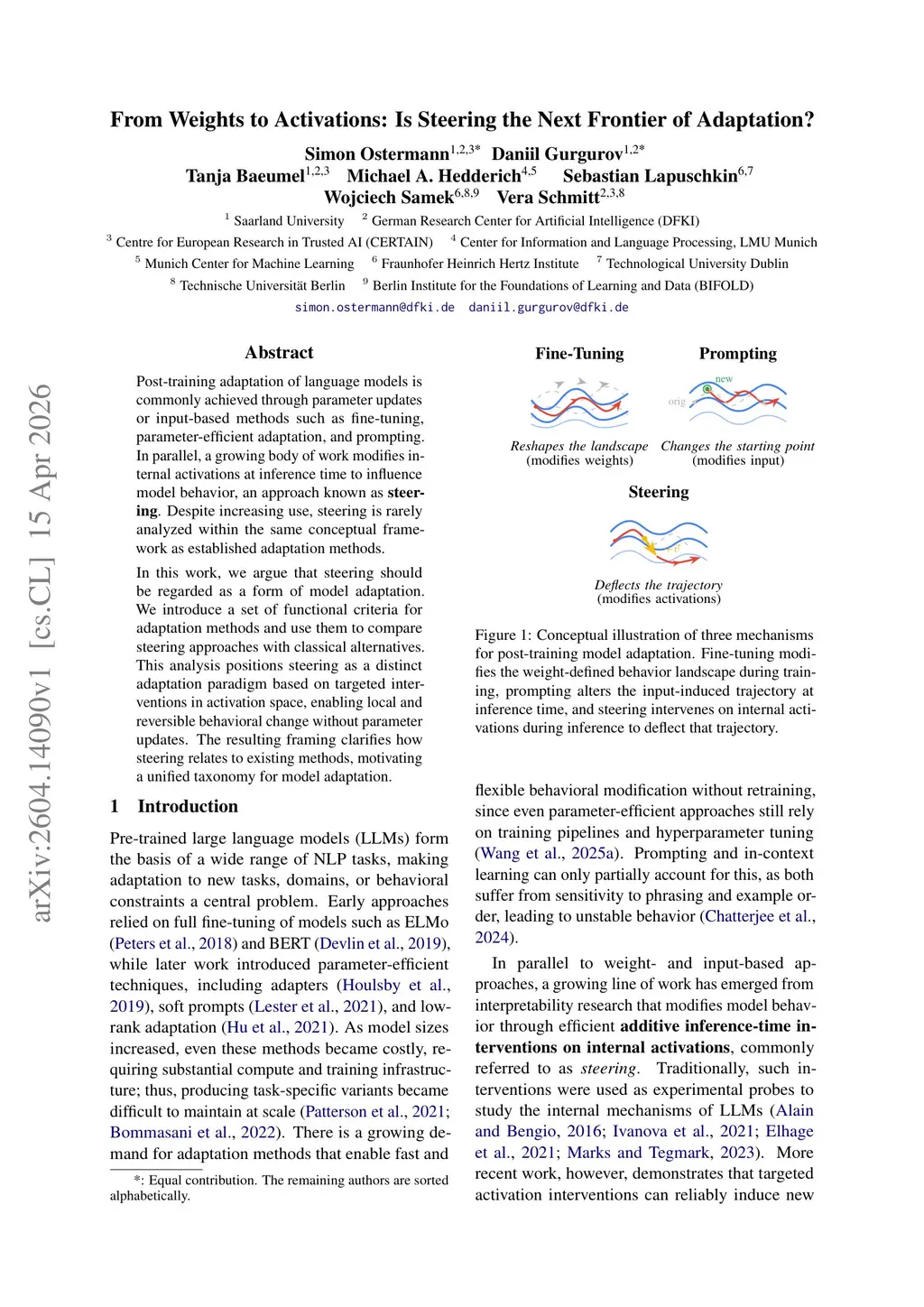 Post-training adaptation of language models is commonly achieved through parameter updates or input-based methods such as fine-tuning, parameter-efficient adaptation, and prompting. In parallel, a growing body of work modifies internal activations at inference time to influence model behavior, an approach known as steering. Despite increasing use, steering is rarely analyzed within the same conceptual framework as established adaptation methods.In this work, we argue that steering should be regarded as a form of model adaptation. We introduce a set of functional criteria for adaptation methods and use them to compare steering approaches with classical alternatives. This analysis positions steering as a distinct adaptation paradigm based on targeted interventions in activation space, enabling local and reversible behavioral change without parameter updates. The resulting framing clarifies how steering relates to existing methods, motivating a unified taxonomy for model adaptation.