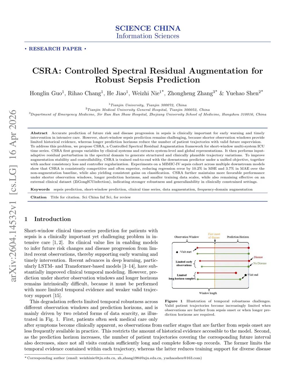 CSRA: Controlled Spectral Residual Augmentation for Robust Sepsis Prediction