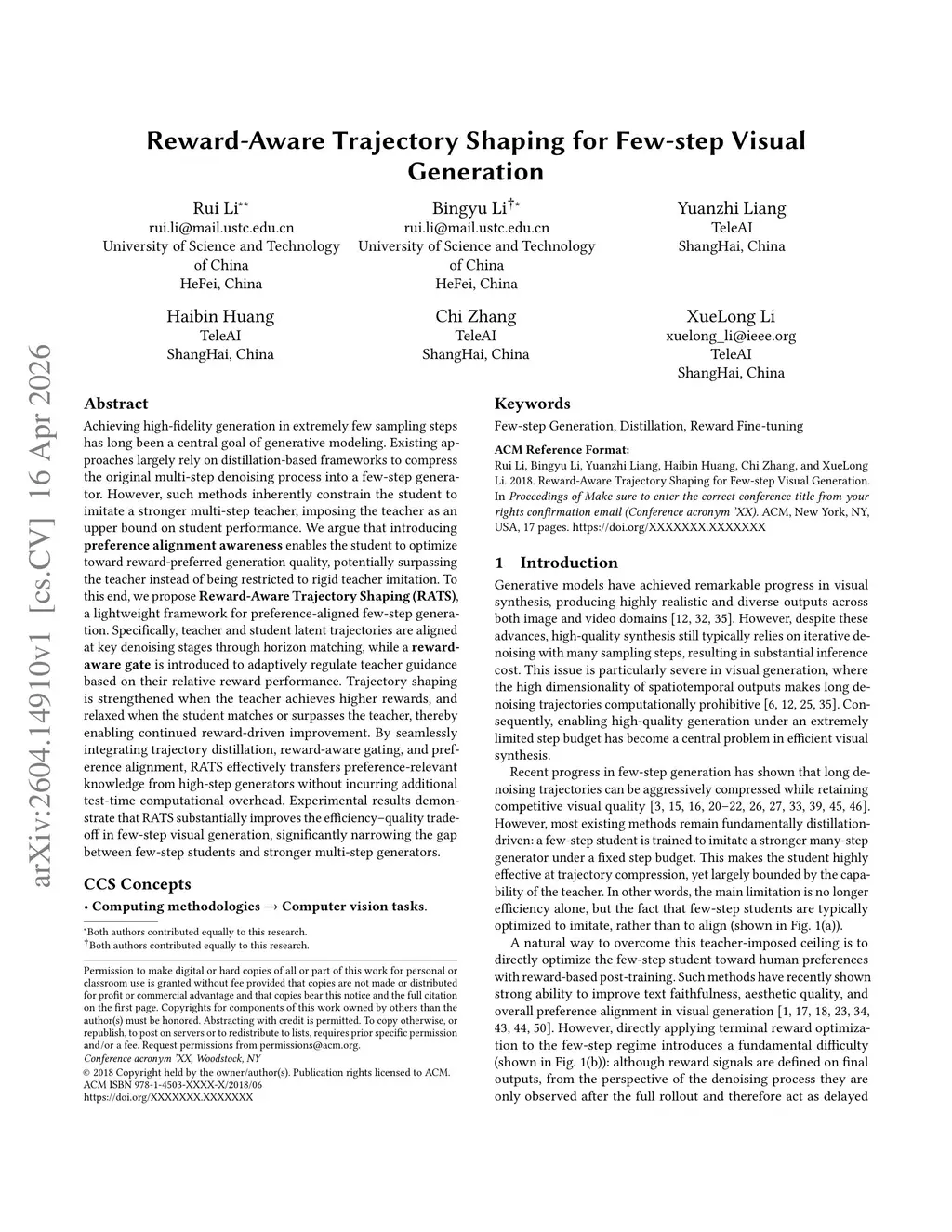 Reward-Aware Trajectory Shaping for Few-step Visual Generation