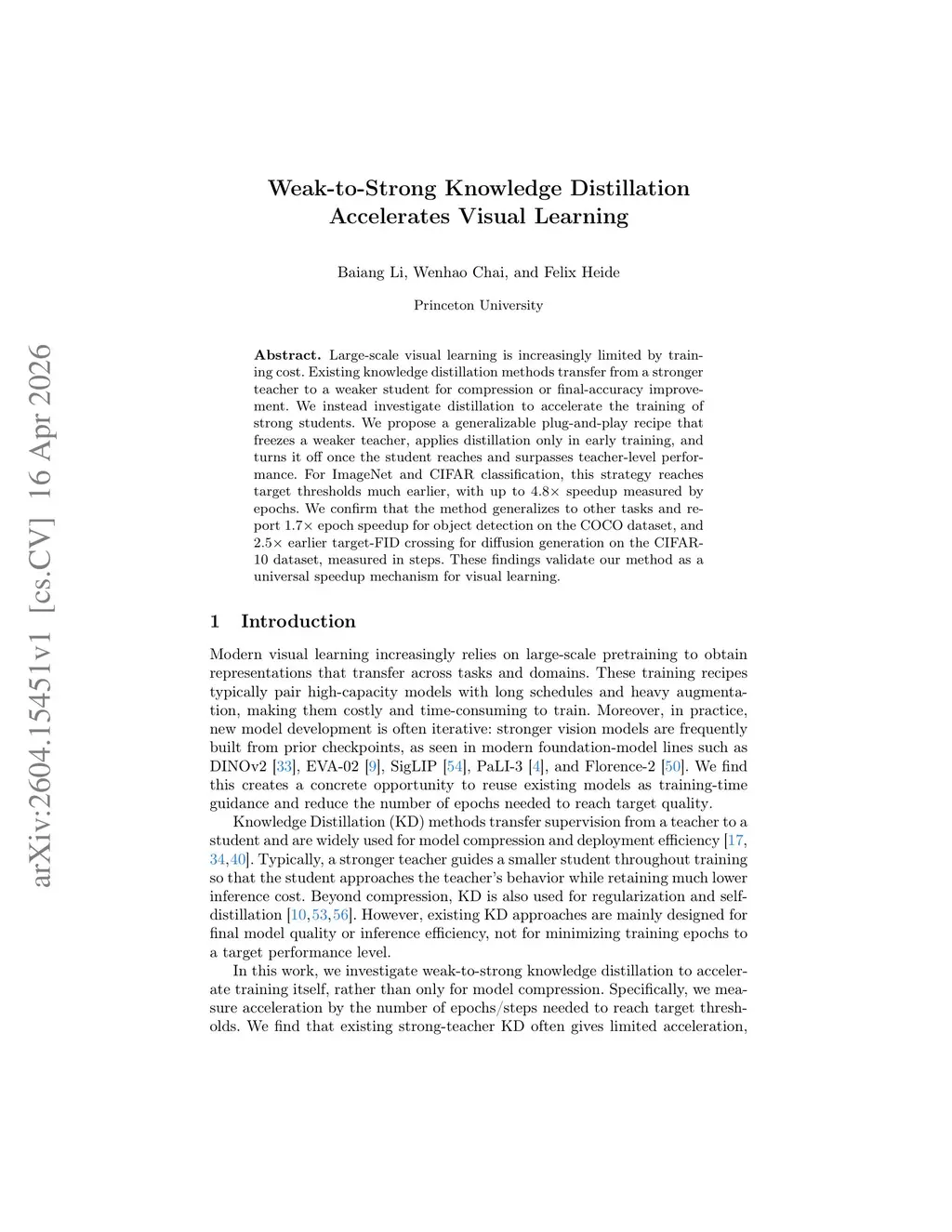 Weak-to-Strong Knowledge Distillation Accelerates Visual Learning