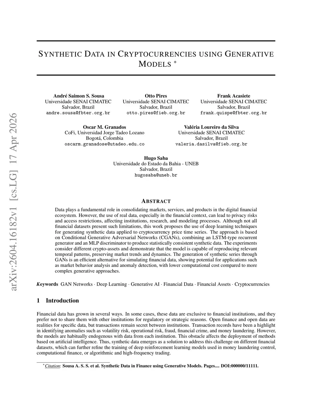 Data plays a fundamental role in consolidating markets, services, and products in the digital financial ecosystem. However, the use of real data, especially in the financial context, can lead to privacy risks and access restrictions, affecting institutions, research, and modeling processes. Although not all financial datasets present such limitations, this work proposes the use of deep learning techniques for generating synthetic data applied to cryptocurrency price time series. The approach is based on Conditional Generative Adversarial Networks (CGANs), combining an LSTM-type recurrent generator and an MLP discriminator to produce statistically consistent synthetic data. The experiments consider different crypto-assets and demonstrate that the model is capable of reproducing relevant temporal patterns, preserving market trends and dynamics. The generation of synthetic series through GANs is an efficient alternative for simulating financial data, showing potential for applications such as market behavior analysis and anomaly detection, with lower computational cost compared to more complex generative approaches.