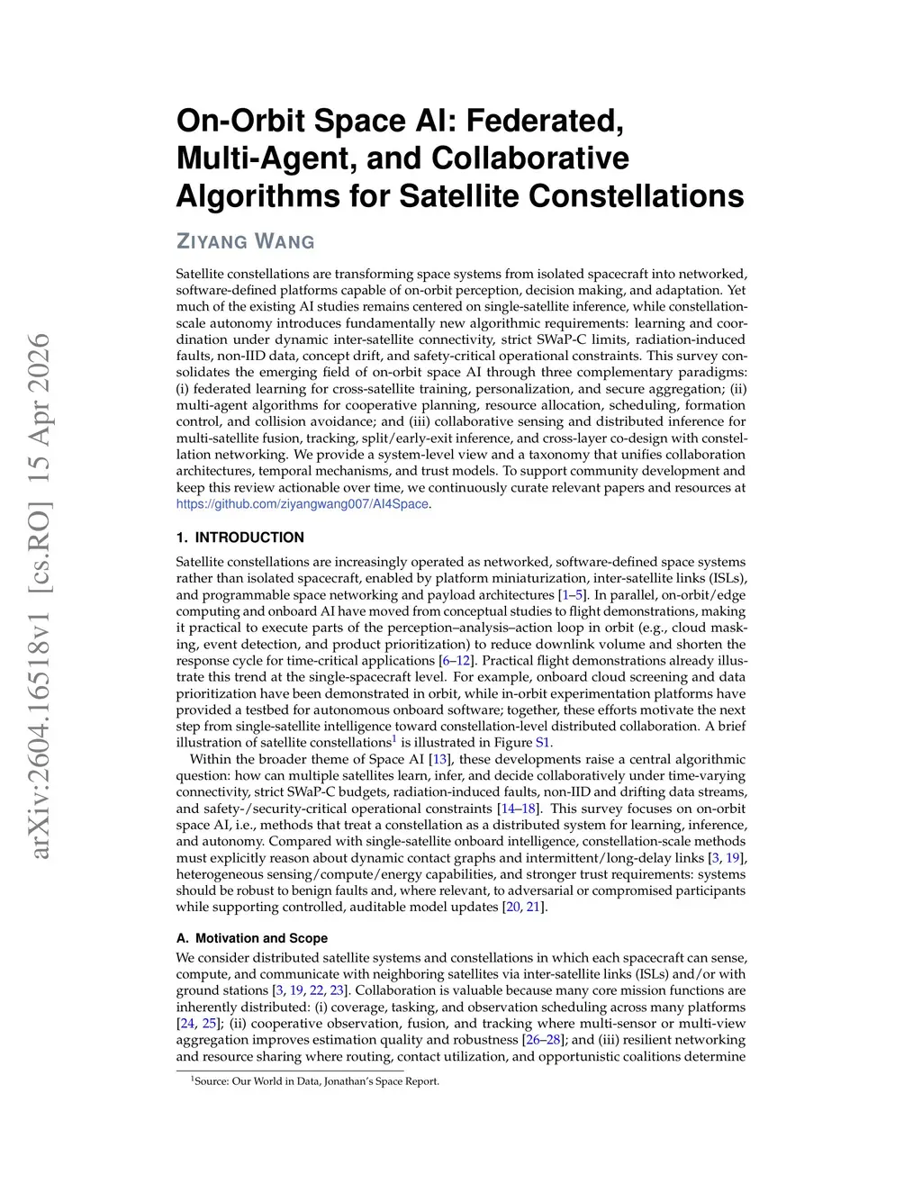 On-Orbit Space AI: Federated, Multi-Agent, and Collaborative Algorithms for Satellite Constellations