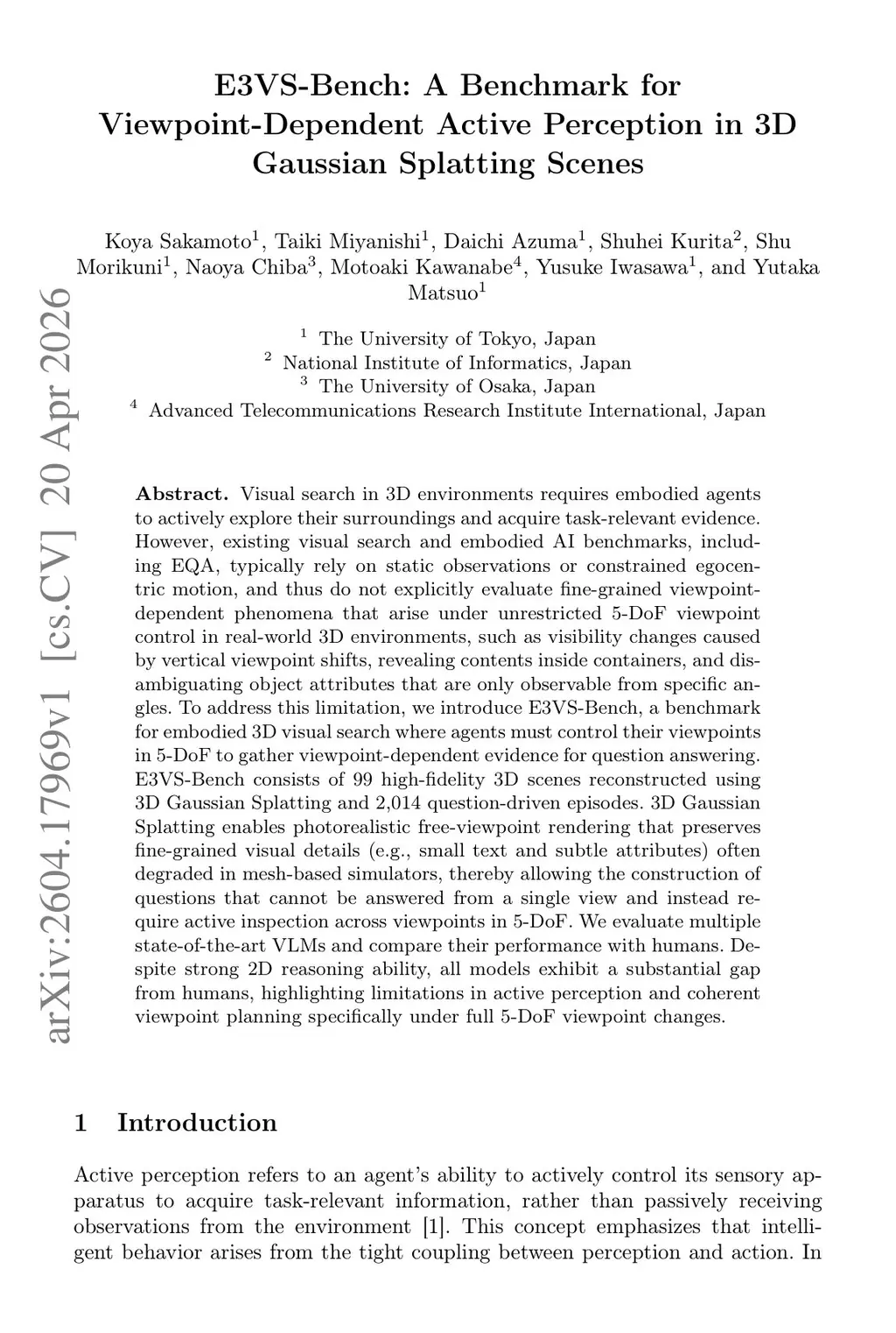E3VS-Bench: A Benchmark for Viewpoint-Dependent Active Perception in 3D Gaussian Splatting Scenes