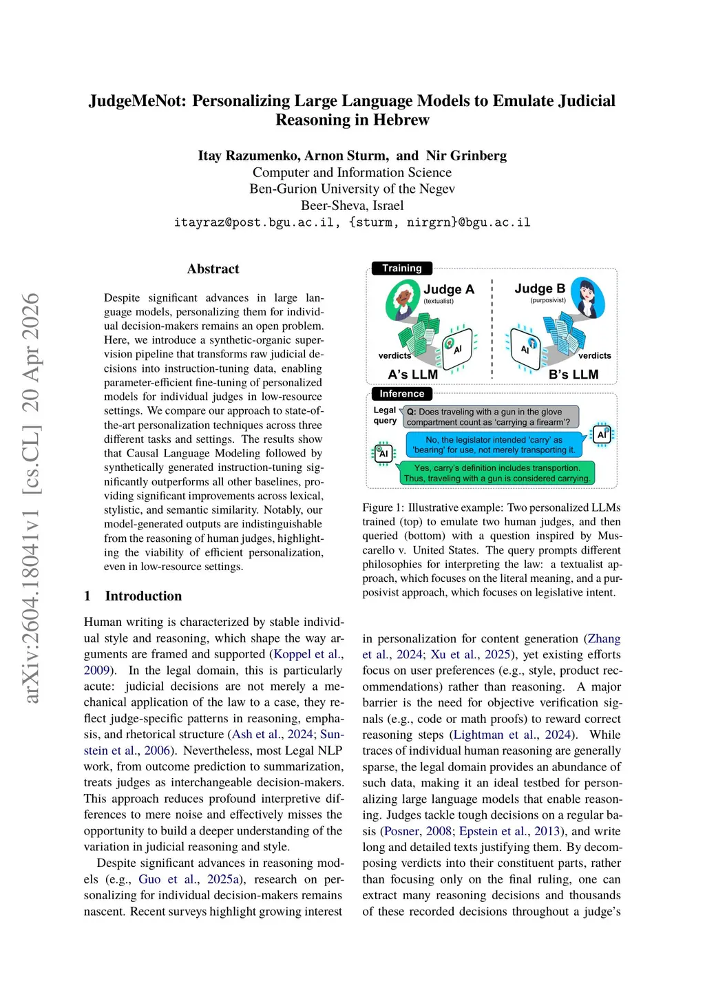JudgeMeNot: Personalizing Large Language Models to Emulate Judicial Reasoning in Hebrew