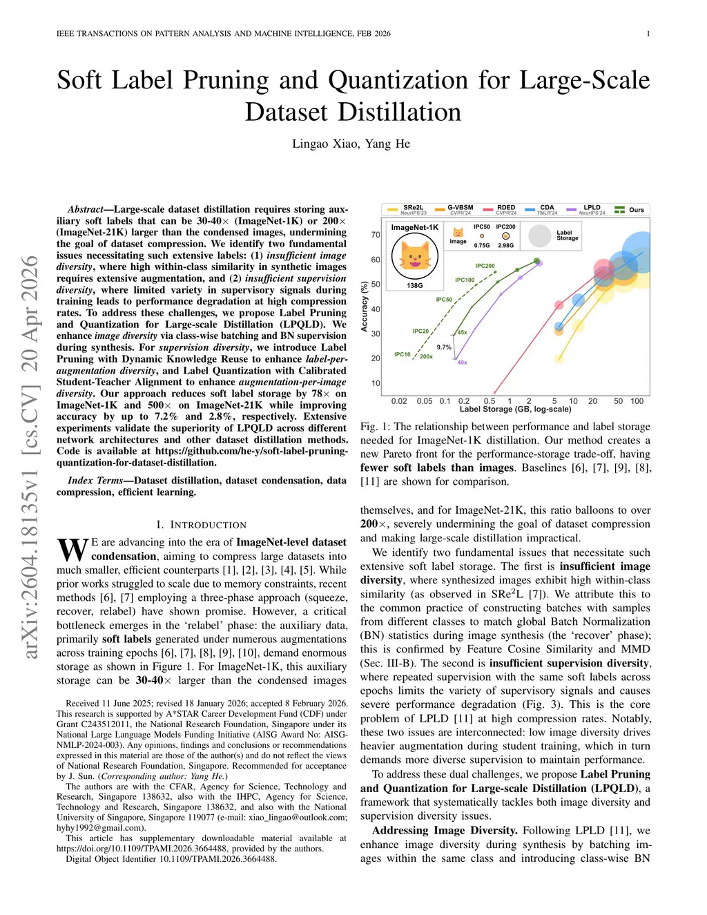 Soft Label Pruning and Quantization for Large-Scale Dataset Distillation