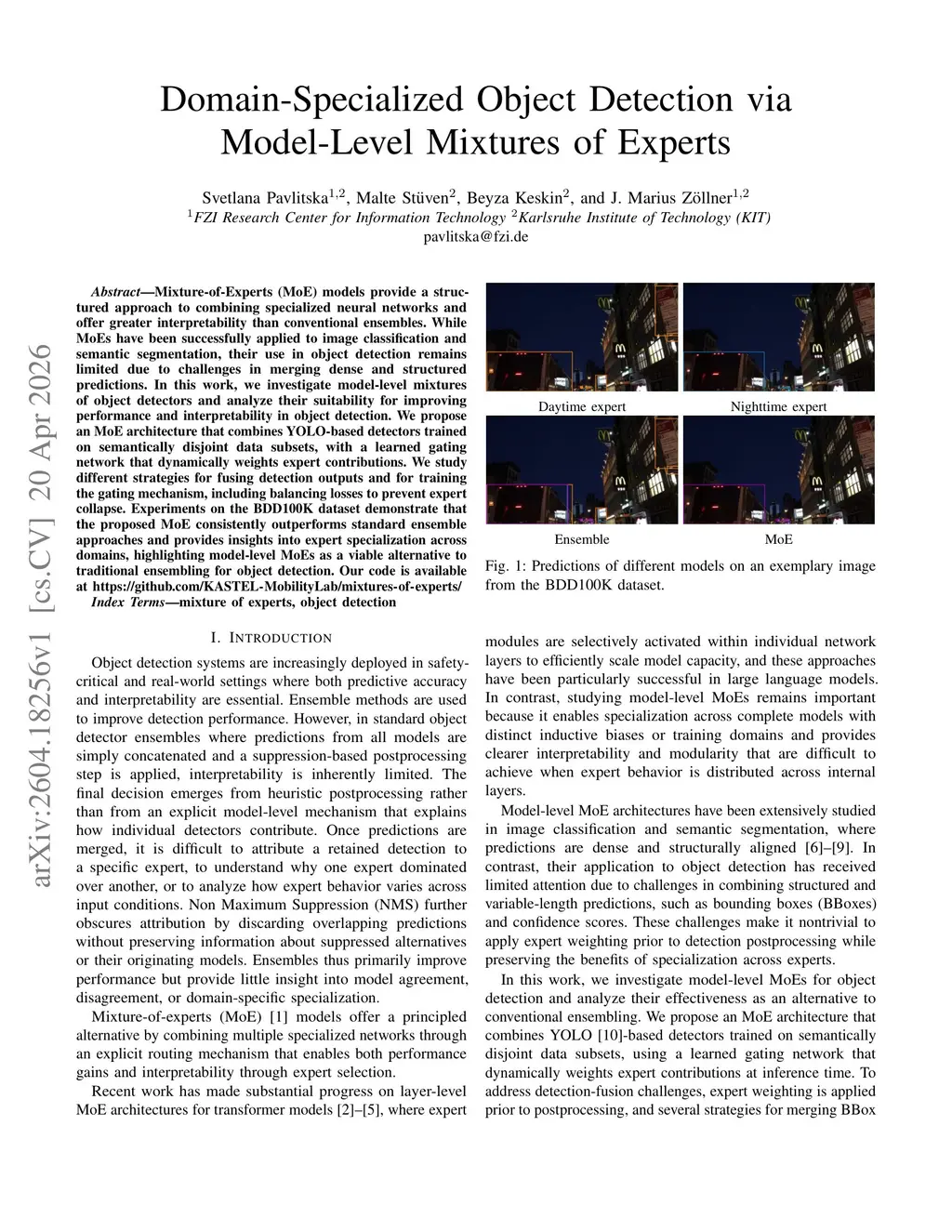 Domain-Specialized Object Detection via Model-Level Mixtures of Experts