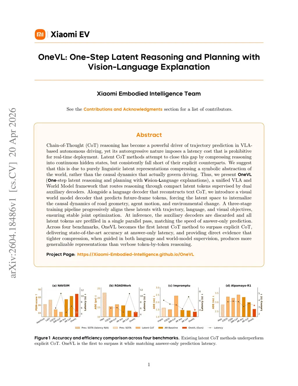 OneVL: One-Step Latent Reasoning and Planning with Vision-Language Explanation