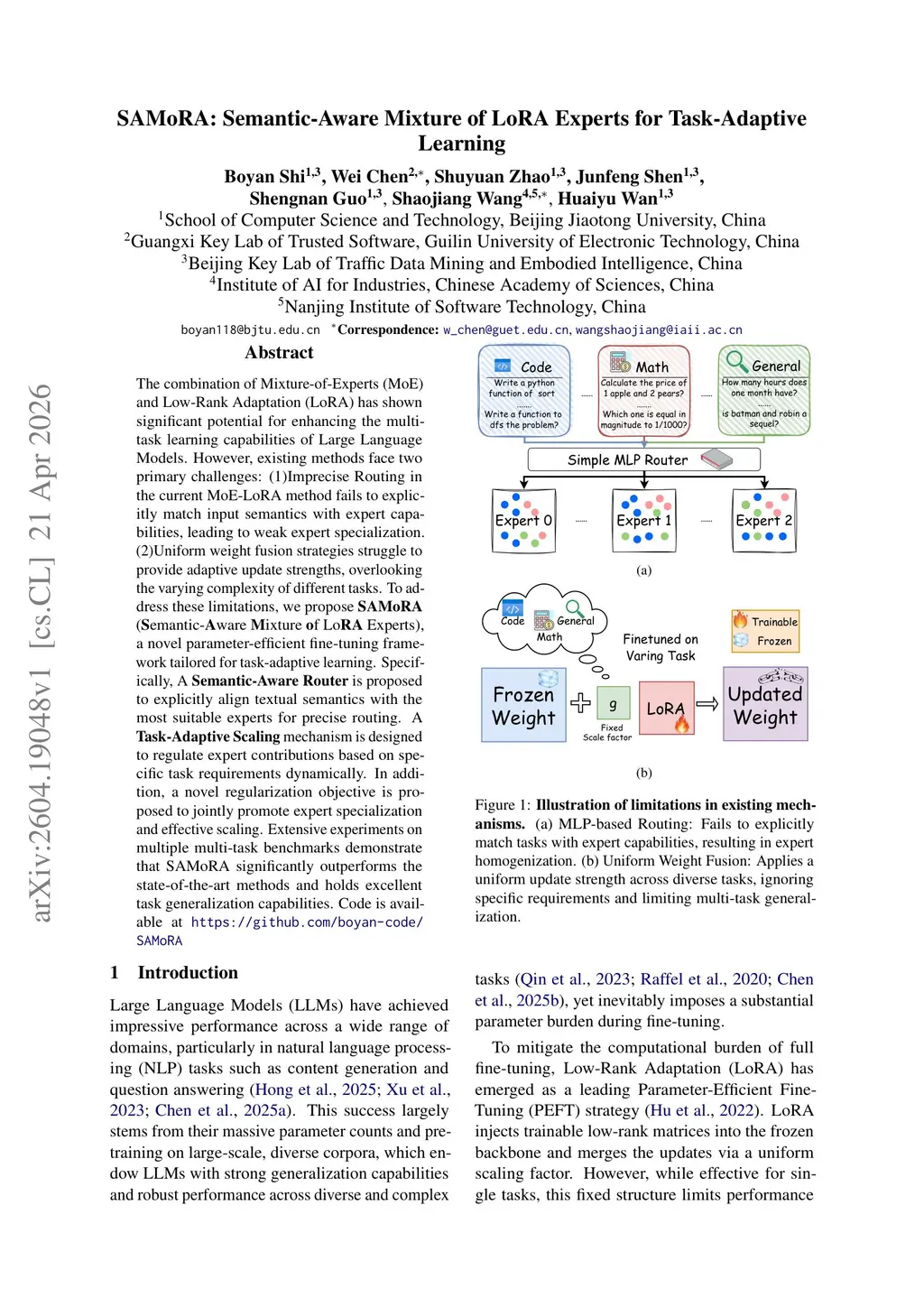 The combination of Mixture-of-Experts (MoE) and Low-Rank Adaptation (LoRA) has shown significant potential for enhancing the multi-task learning capabilities of Large Language Models. However, existing methods face two primary challenges: (1)Imprecise Routing in the current MoE-LoRA method fails to explicitly match input semantics with expert capabilities, leading to weak expert specialization. (2)Uniform weight fusion strategies struggle to provide adaptive update strengths, overlooking the varying complexity of different tasks. To address these limitations, we propose SAMoRA (Semantic-Aware Mixture of LoRA Experts), a novel parameter-efficient fine-tuning framework tailored for task-adaptive learning. Specifically, A Semantic-Aware Router is proposed to explicitly align textual semantics with the most suitable experts for precise routing. A Task-Adaptive Scaling mechanism is designed to regulate expert contributions based on specific task requirements dynamically. In addition, a novel regularization objective is proposed to jointly promote expert specialization and effective scaling. Extensive experiments on multiple multi-task benchmarks demonstrate that SAMoRA significantly outperforms the state-of-the-art methods and holds excellent task generalization capabilities. Code is available atthis https URL