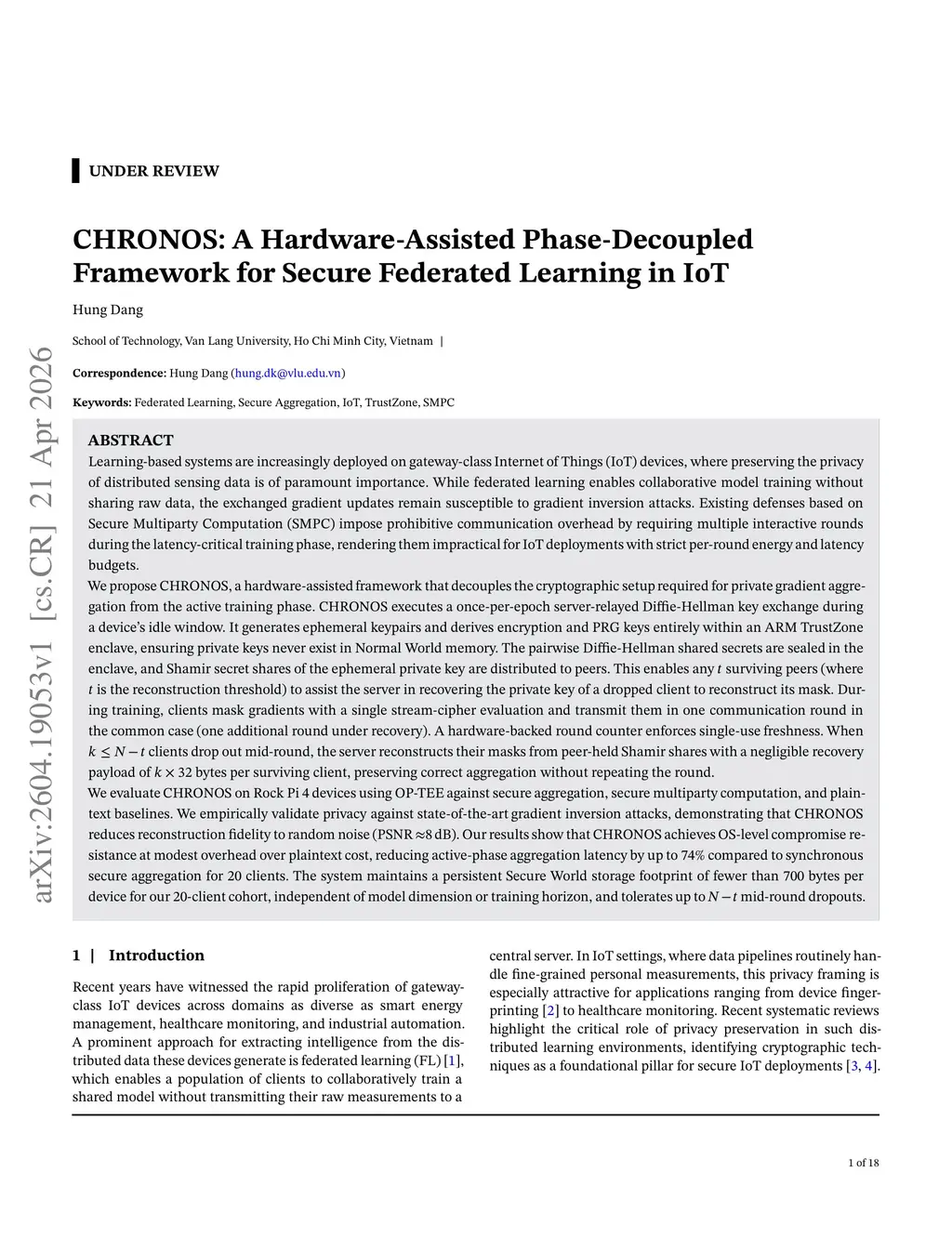 CHRONOS: A Hardware-Assisted Phase-Decoupled Framework for Secure Federated Learning in IoT