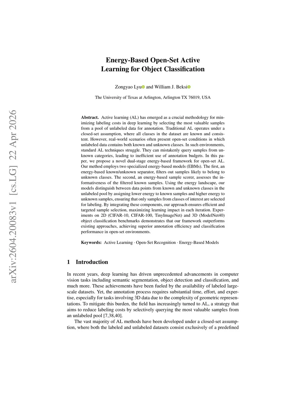 Active learning (AL) has emerged as a crucial methodology for minimizing labeling costs in deep learning by selecting the most valuable samples from a pool of unlabeled data for annotation. Traditional AL operates under a closed-set assumption, where all classes in the dataset are known and consistent. However, real-world scenarios often present open-set conditions in which unlabeled data contains both known and unknown classes. In such environments, standard AL techniques struggle. They can mistakenly query samples from unknown categories, leading to inefficient use of annotation budgets. In this paper, we propose a novel dual-stage energy-based framework for open-set AL. Our method employs two specialized energy-based models (EBMs). The first, an energy-based known/unknown separator, filters out samples likely to belong to unknown classes. The second, an energy-based sample scorer, assesses the informativeness of the filtered known samples. Using the energy landscape, our models distinguish between data points from known and unknown classes in the unlabeled pool by assigning lower energy to known samples and higher energy to unknown samples, ensuring that only samples from classes of interest are selected for labeling. By integrating these components, our approach ensures efficient and targeted sample selection, maximizing learning impact in each iteration. Experiments on 2D (CIFAR-10, CIFAR-100, TinyImageNet) and 3D (ModelNet40) object classification benchmarks demonstrates that our framework outperforms existing approaches, achieving superior annotation efficiency and classification performance in open-set environments.