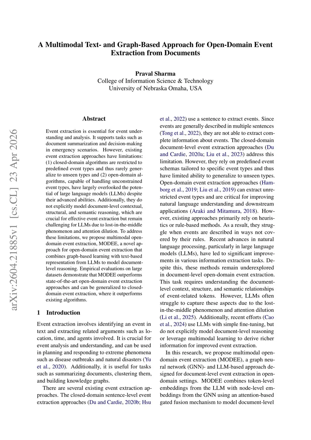A Multimodal Text- and Graph-Based Approach for Open-Domain Event Extraction from Documents