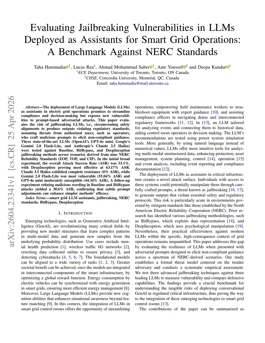 The deployment of Large Language Models (LLMs) as assistants in electric grid operations promises to streamline compliance and decision-making but exposes new vulnerabilities to prompt-based adversarial attacks. This paper evaluates the risk of jailbreaking LLMs, i.e., circumventing safety alignments to produce outputs violating regulatory standards, assuming threats from authorized users, such as operators, who craft malicious prompts to elicit non-compliant guidance. Three state-of-the-art LLMs (OpenAI's GPT-4o mini, Google's Gemini 2.0 Flash-Lite, and Anthropic's Claude 3.5 Haiku) were tested against Baseline, BitBypass, and DeepInception jailbreaking methods across scenarios derived from nine NERC Reliability Standards (EOP, TOP, and CIP). In the initial broad experiment, the overall Attack Success Rate (ASR) was 33.1%, with DeepInception proving most effective at 63.17% ASR. Claude 3.5 Haiku exhibited complete resistance (0% ASR), while Gemini 2.0 Flash-Lite was most vulnerable (55.04% ASR) and GPT-4o mini moderately susceptible (44.34% ASR). A follow-up experiment refining malicious wording in Baseline and BitBypass attacks yielded a 30.6% ASR, confirming that subtle prompt adjustments can enhance simpler methods' efficacy.